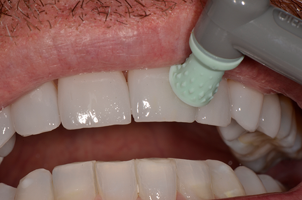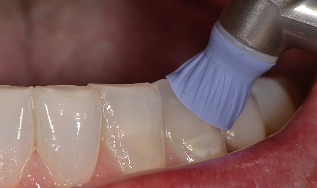 Research has shown polishing can lead to enamel mineral loss and should be limited to areas where stains can’t be removed by other methods.13 Clinicians must be able to determine when rubber cup polishing is necessary for biofilm removal to avoid the morphological changes that can occur in tooth structure with continuous polishing.13 This determination can be made after a comprehensive exam is completed.