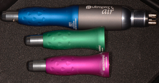 This line also includes a lightweight handpiece that allows for a smooth polishing experience. At only 2.2 ounces, the handpiece reduces hand and arm fatigue that often comes with rubber cup polishing. It features a 360° swivel for easy rotation and a soft-start motor to minimize splatter. The vibration-free handpiece cleans at a maximum speed of 4,000 RPM and features a universal E-type motor for multifunctionality. Beyond the angles in the Ultrapro Tx product line, it’s compatible with nearly all disposable prophy angles on the market today. The prophy angles also can be used with any handpiece.