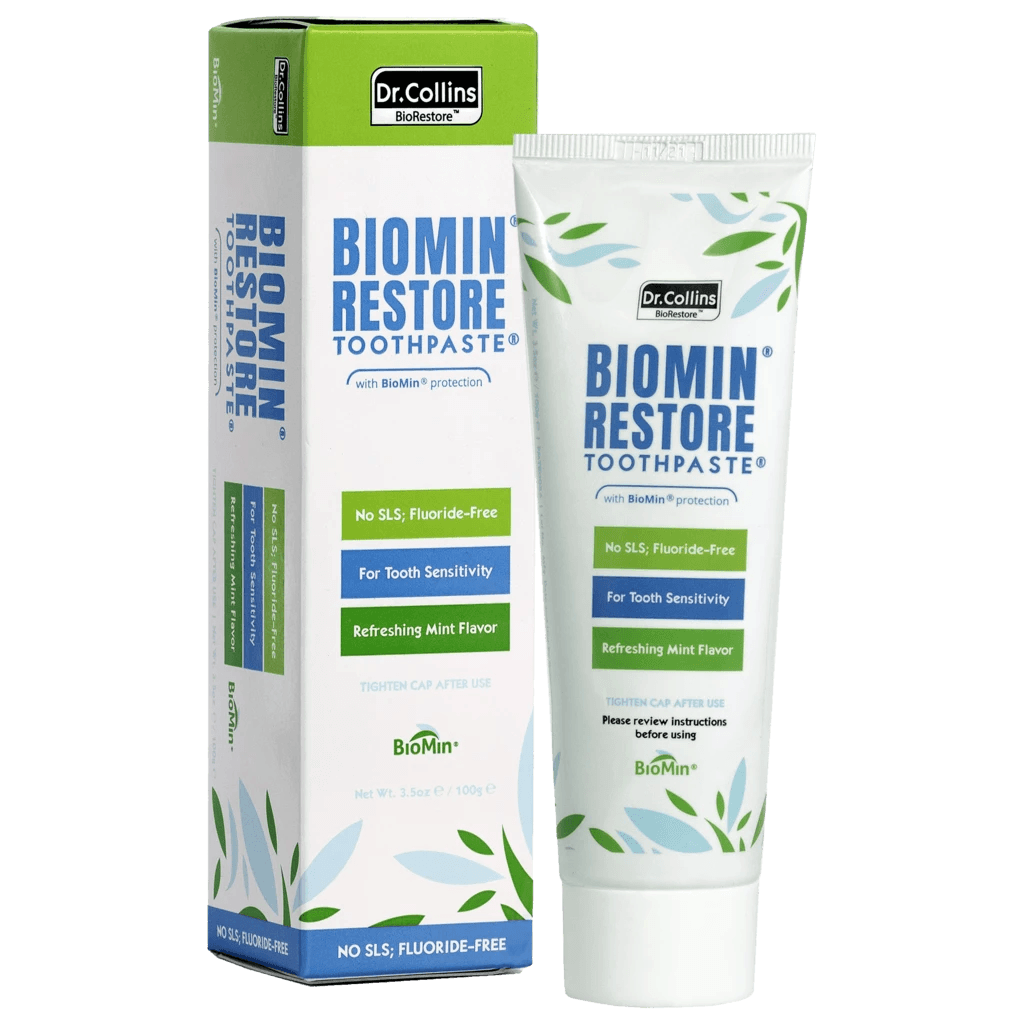 The toothpaste is designed to control the release of calcium, phosphate, and fluoride ions for hours after brushing, which is said to develop acid-resistant fluorapatite on the tooth surface and inside exposed dentin tubules. BioMin Restore Plus is based on BioMin® F, a patented bioactive glass complex developed at Queen Mary University of London.