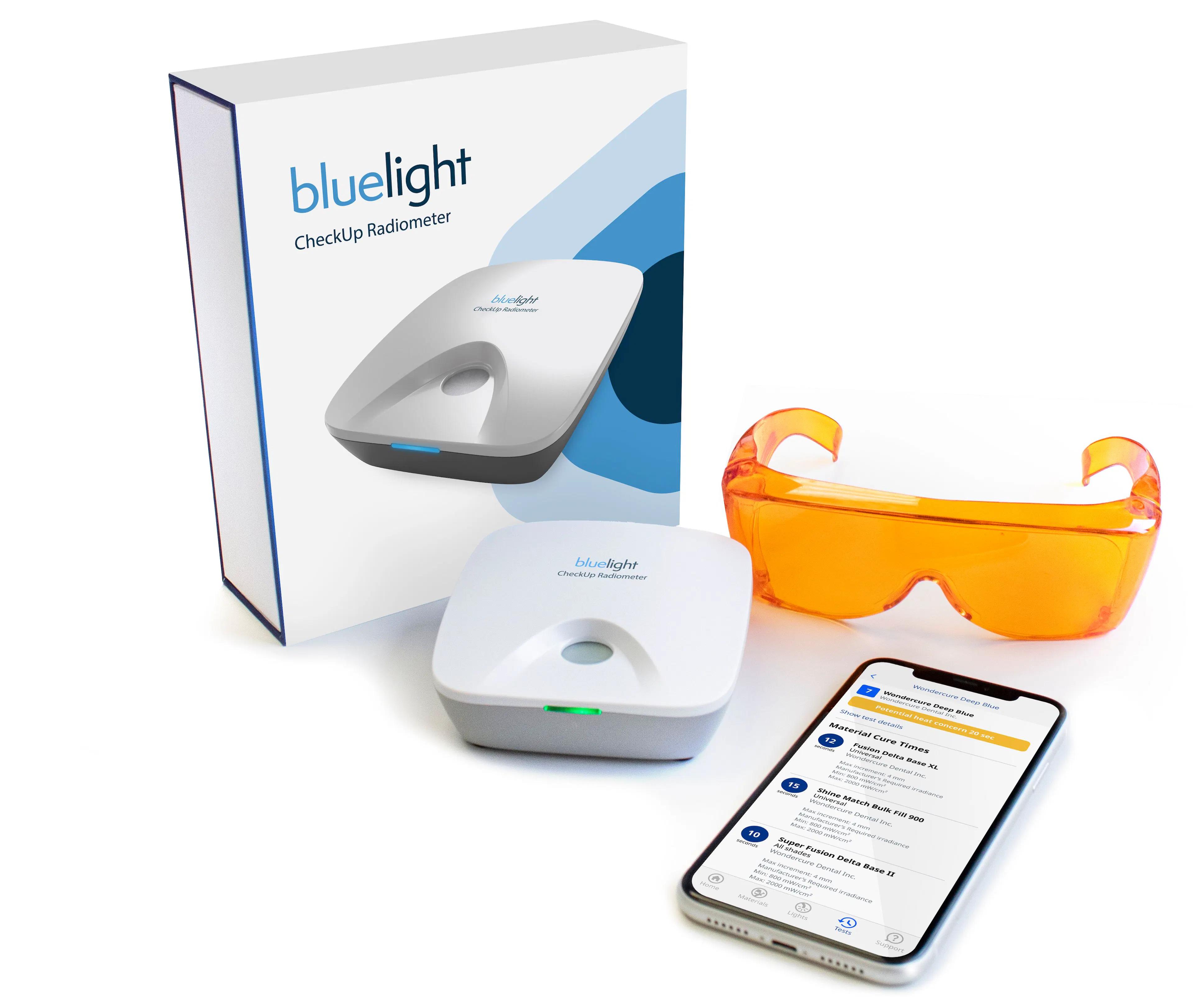 The CheckUp Smart Radiometer takes into account curing light output, coupled with curing tip circumference and crosses this information to a back-end data base of thousands of light-cured materials to offer recommendations on curing times and compatibility. This vast analysis is distilled down into a simple stop-light style output to allow dental staff to make decisions on the state of their curing light in coordination with their materials to ensure proper curing and fewer remakes.