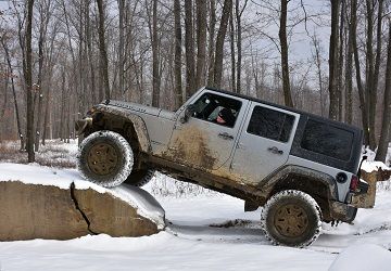 Off-Road Driving: Bouncing in a Jeep that tilted 30 degrees as it crawled over a boulder, felt exhilarating and frightening. My husband and I took turns driving, as Ty, our instructor, calmly guided us through the Rock, a 3 mile, snow-covered course. We traversed iced-over ditches, maneuvered through sharp curves, crunched rocks in gullies and climbed over three, 10 to 20-foot hills in quick succession, all while managing not to hit trees that seemed to pop in front of us in the dense woods.