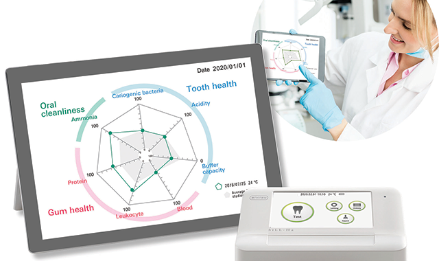 Through the test, doctors can see if patients are at an increased risk for developing caries and periodontal disease. Using the dual reflectance method, SillHa measures the reactivity from a saliva sample applied to a test strip, and results can provide otherwise invisible information-the activity of bacteria, acidity, and presence of inflammatory markers.