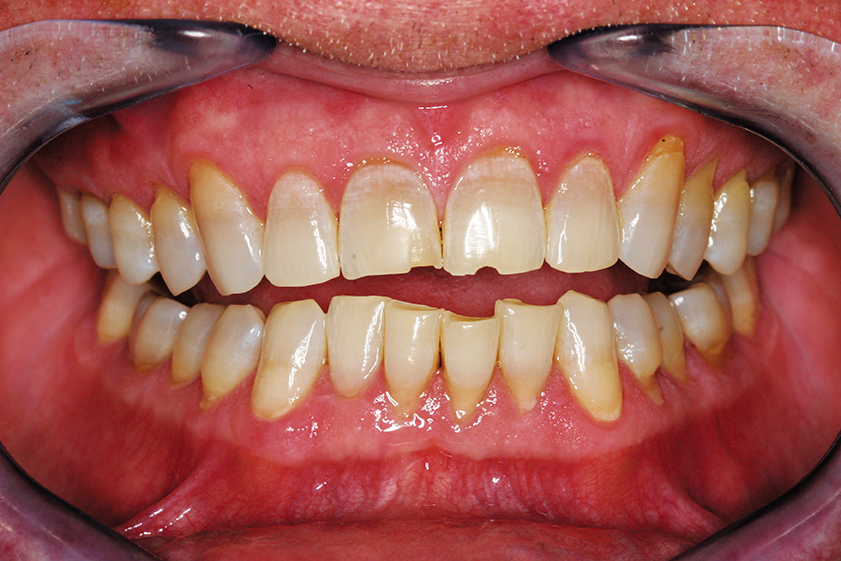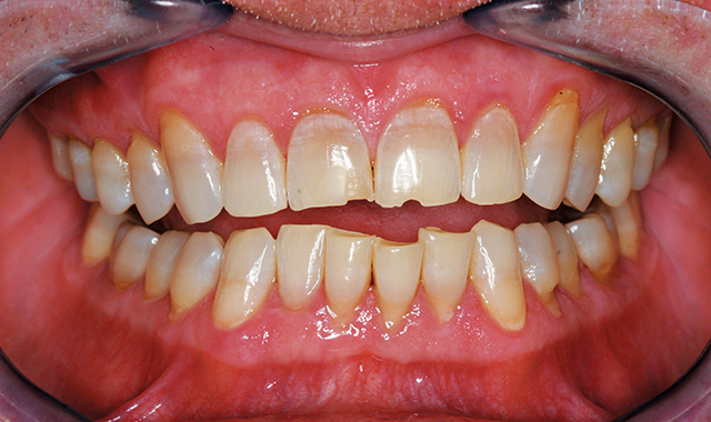 A middle-aged patient presented with a desire for a healthier, more youthful smile that was compromised by crowding and wear. A conservative approach of ABB (alignment, bleaching and bonding) was recommended, starting with aligner care with Invisalign (Fig. 1).
