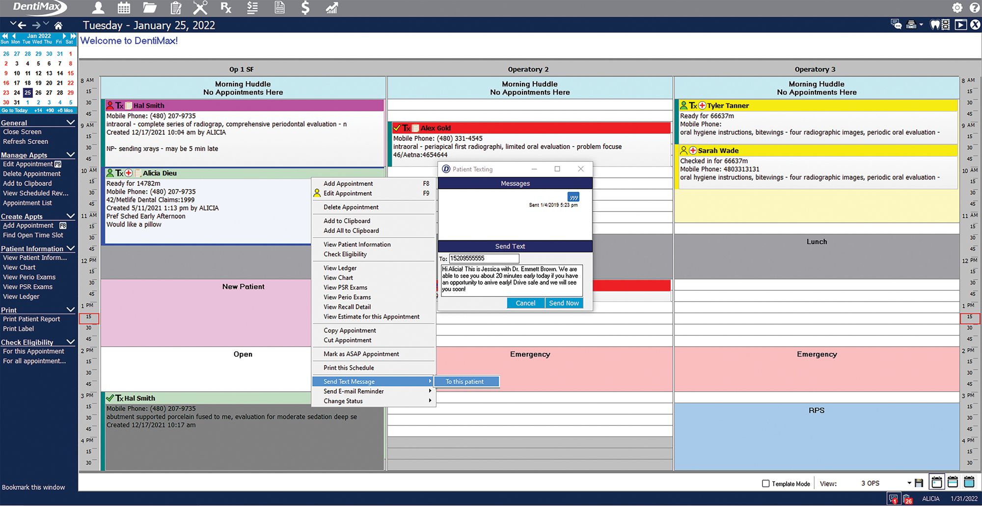 You might think all things are equal when looking at fully integrated products, but there are various degrees of integration depending on the vendors you are pairing together and the type of product offered. One example of being fully integrated is having another product layered into the existing system. For example, DentiMax’s Dental Office Text Messaging provides the ability to send one-off and automated text messages and view text history from an existing patient profile directly within the practice management software (Figure 1).