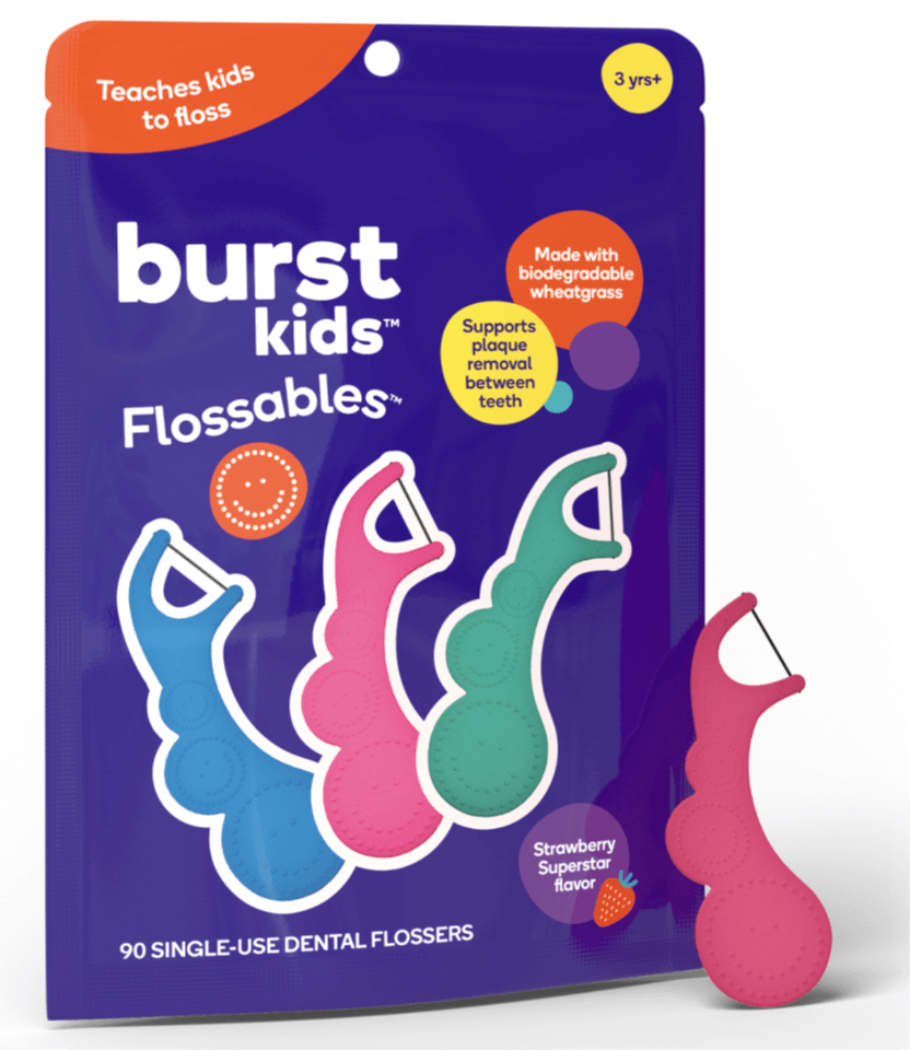 The new BURSTkids Flossables dental floss picks are specifically created for kids ages 3+ to make flossing fun.