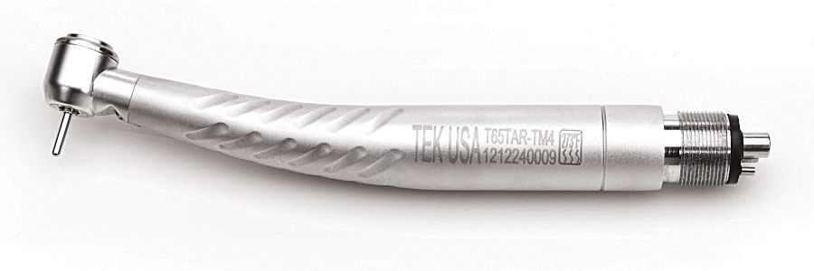 The TEK USA T65 Series self-illuminating LED high-speed handpiece is said to be the latest in technology in illuminated handpieces. The TEK USA brand reportedly is superior to its similar-looking self-illuminated handpieces because of the company’s very high grade United States-made ceramic bearing turbine with a super-grip push-button autochuck, upgraded e-generator that produces very white bright illumination and six-port water spray for maximum water coolant.