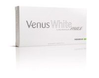 Venus White MaxVenus White Max is a professional in-office teeth-whitening treatment that is said to be fast and effective for a brilliant smile in a hurry. Venus White Max consists of three or four 15-minute treatments with 38-percent hydrogen peroxide gel. Syringe-to-syringe mixing is designed to chemically activate the product, ensuring a thorough mix and providing maximum freshness. Venus White Max contains potassium nitrate, which reportedly helps decrease sensitivity associated with bleaching. Follow in-office treatment with Venus White Pro custom take-home whitening or Venus White Ultra pre-filled, disposable whitening trays for best results.