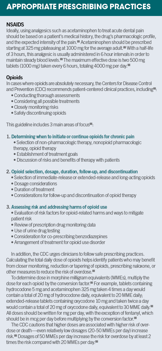 It is also critical that dental prescribers follow evidence-based best practices and regulations and recommendations set by their state dental boards and the Centers for Disease Control and Prevention, Dr Donaldson says.