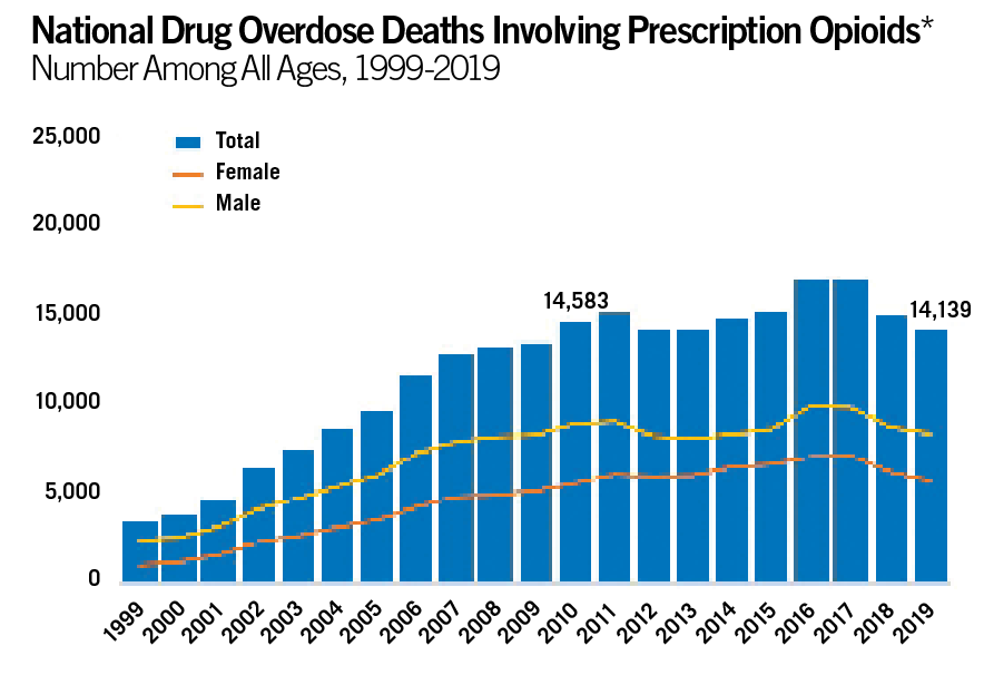 This was the start of what we now recognize as an epidemic; nearly 841,000 Americans died of a drug overdose between 1999 and 2019. In 2019 alone, 70,630 drug overdoses occurred in the United States, 70.6% of which were opioid-related. Opioids, and more specifically, synthetic opioids, are the main drivers of drug overdose deaths.2