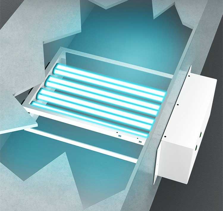 CK300H not only has high UV intensity, but also comes with 4 parallel tubes to increase exposure time, which guarantees 99.9% of pathogens is killed once air passes the CK300H. Unlike normal UV ducting systems which work all the time, the airflow sensors with this solution turn CK300H on only when the HVAC system is operating. This provides energy saving and helps prolong the lifespan of the tubes. The CK300H solution comes with 2 LED indicator lights and each light indicates the operation of 2 tubes. If one tube doesn’t work normally, the corresponding LED light will stop working.