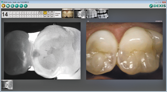In addition to its innovative technology, CariVu is fully integrated with the DEXIS imaging software programs. Dentists are able to display the transillumination video feed or images next to previously captured X-rays and camera images, allowing for quick comparison and monitoring of areas over time. Since CariVu images are similar in appearance to familiar X-ray images, there is no need to calibrate the device or become versed in the meaning of multiple color codes or numeric indicators to find out the location and size of caries.