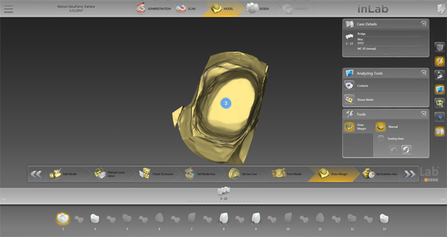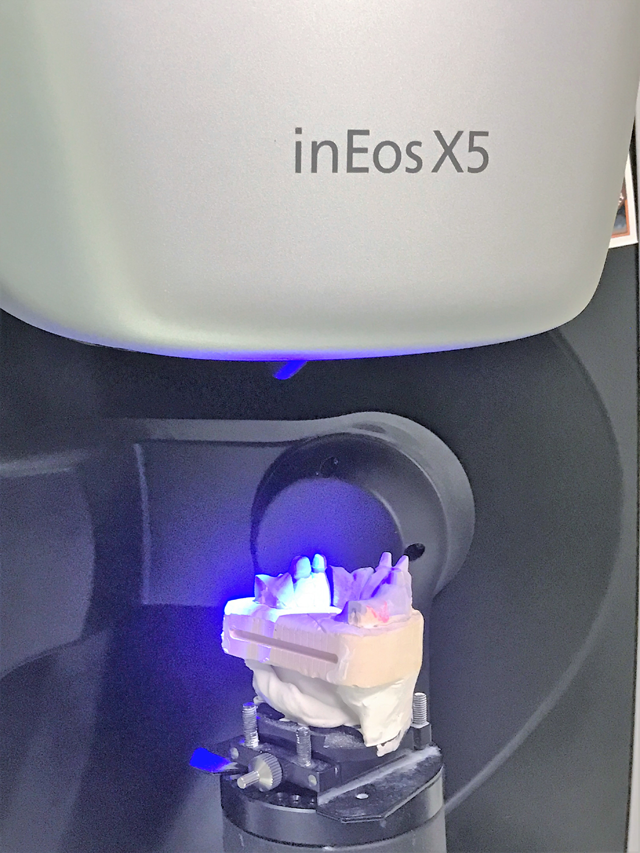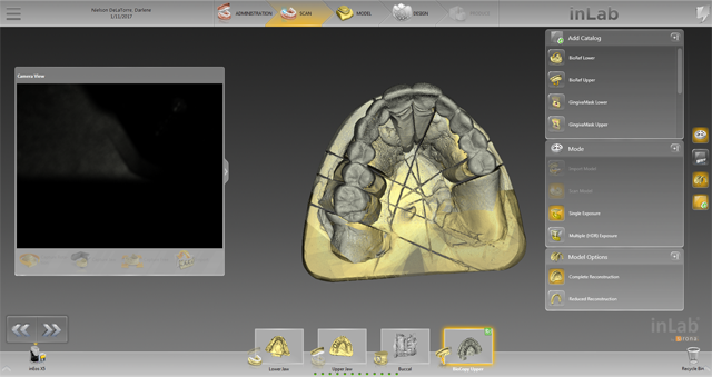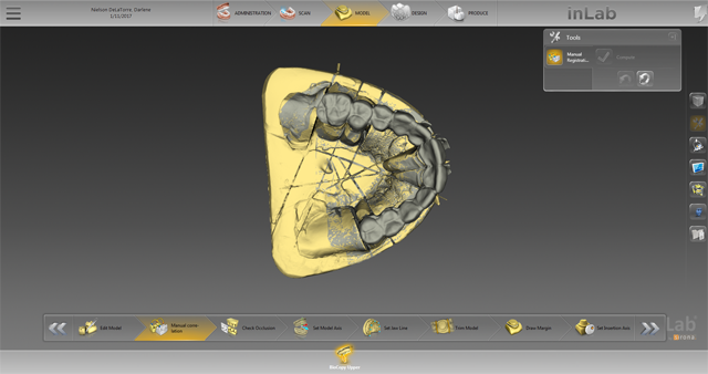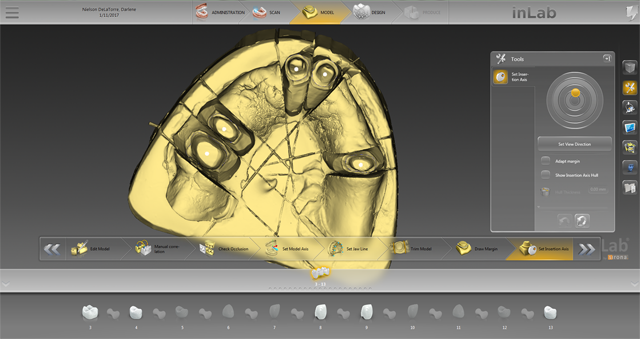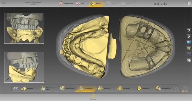 We then milled a second temporary with the necessary adjustments to use as biocopy in the inLab SW (Fig. 6). The case was set-up in the administration function (Fig. 7) and was scanned into the SW using the inEos X5 (Figs. 8 & 9).