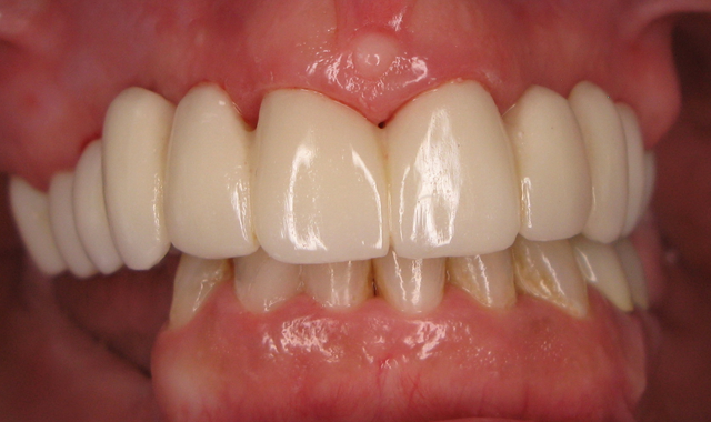 This was a case that I worked on for a very special patient-my own sister. The patient had a complicated dental history and has worn a removable denture for a very long time. Thankfully, she has a dental professional in the family and came to learn that she now had options for a more stable, permanent and beautiful smile.