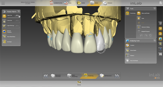 The positioning step is very important to ensure all restorations are perfectly situated. Taking some additional time and care to position and size the restorations will result in a better design proposal. By not checking the adapted proposal box, the SW will provide me with the ideal positioning as I set it, as opposed to adapting it to the mandibular arch (Fig. 18).