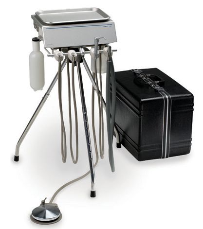 The Rota-Dent is a portable dental unit that operates on compressed air and is otherwise fully-self contained