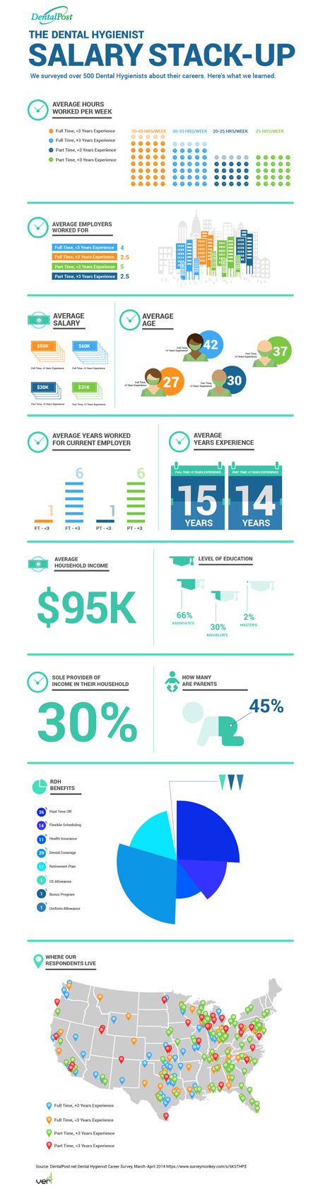 In DentalPost’s survey, they also found out some interesting statistics on RDH benefits that play a role in how these hygienists are being compensated. Check out the survey results below to see some of the surprising results.