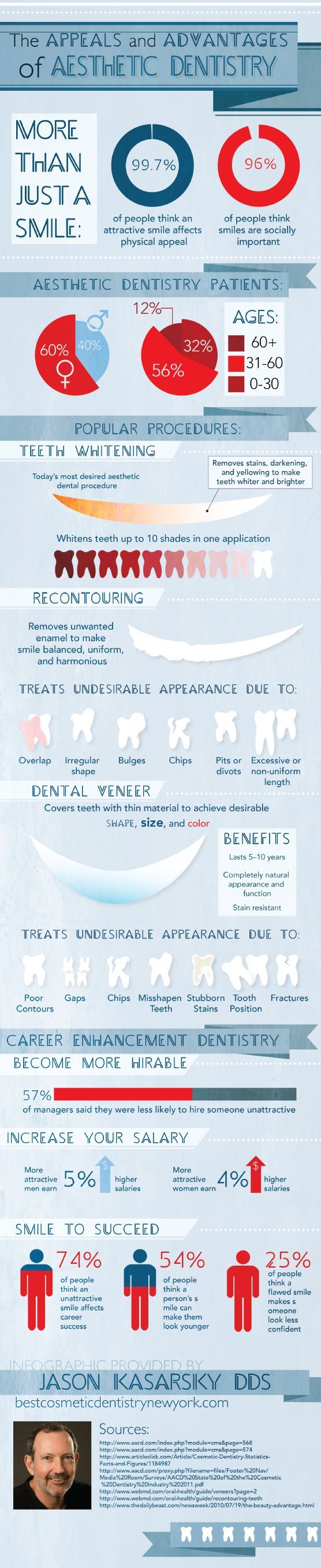 Created by Jason Kasarsky, DDS, the infographic is a great way to educate patients on the value of cosmetic dentistry. Whether a patient is vying for a promotion or attempting to expand their social circle, aesthetic dentistry can help them get to the top or make a great first impression. Click on the version below to make it larger: