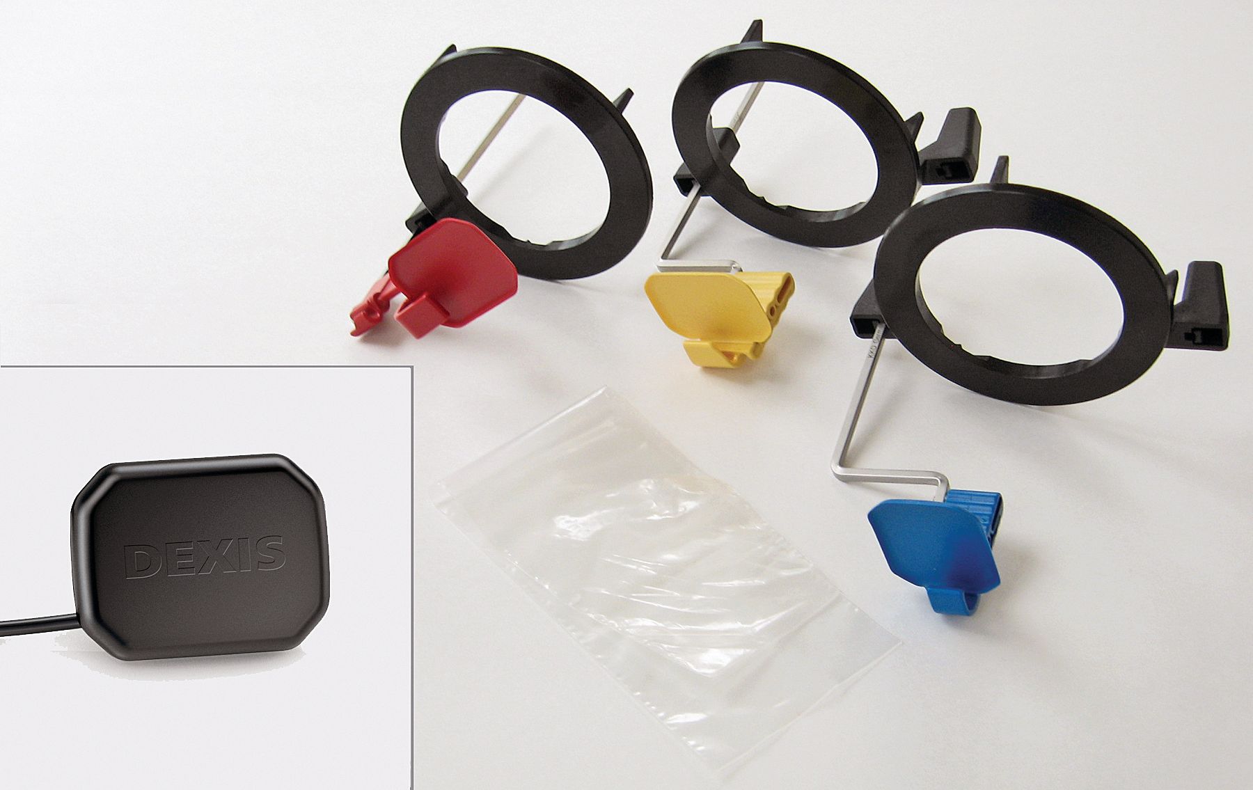 Physical Set-up: Barrier the sensor (not multiple sensors) and assemble the rings, bars, and biteblocks that have been autoclaved per CDC guidelines. Note: DEXIS uses RINN-style holders that are familiar to most dental professionals.