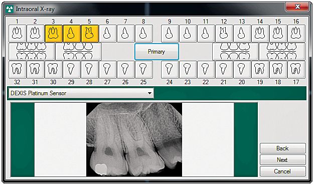 Working in conjunction with the sensor and holders, the software does its job instantly. With each capture, the image is automatically saved, dated, tooth numbered, correctly oriented and mounted, and you also gain a preview. You also can set up your own sequence-choose how you want to take X-rays in an order you find most efficient.