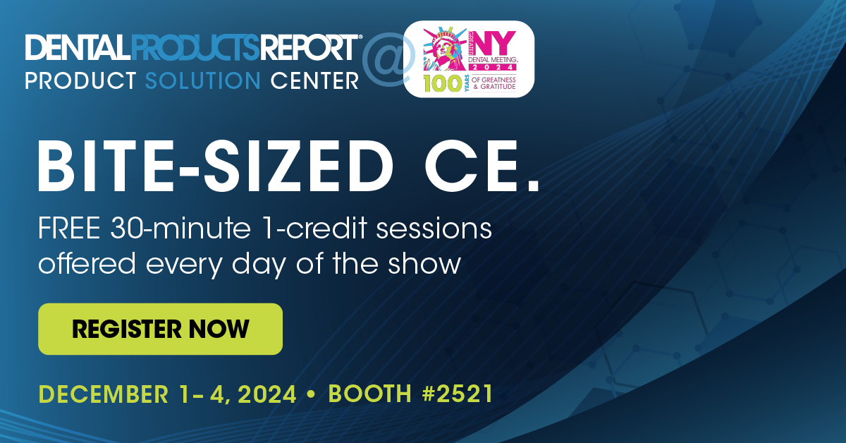 Join Dental Products Report for the 2024 Product Solution Center at the Greater New York Dental Meeting. Enjoy eight 30-minute accredited sessions each day of the show, covering exciting topics presented by top minds from across the industry. Check out the latest course lineup and pre-register for the show today by clicking here. No pre-registration is required for these courses.
