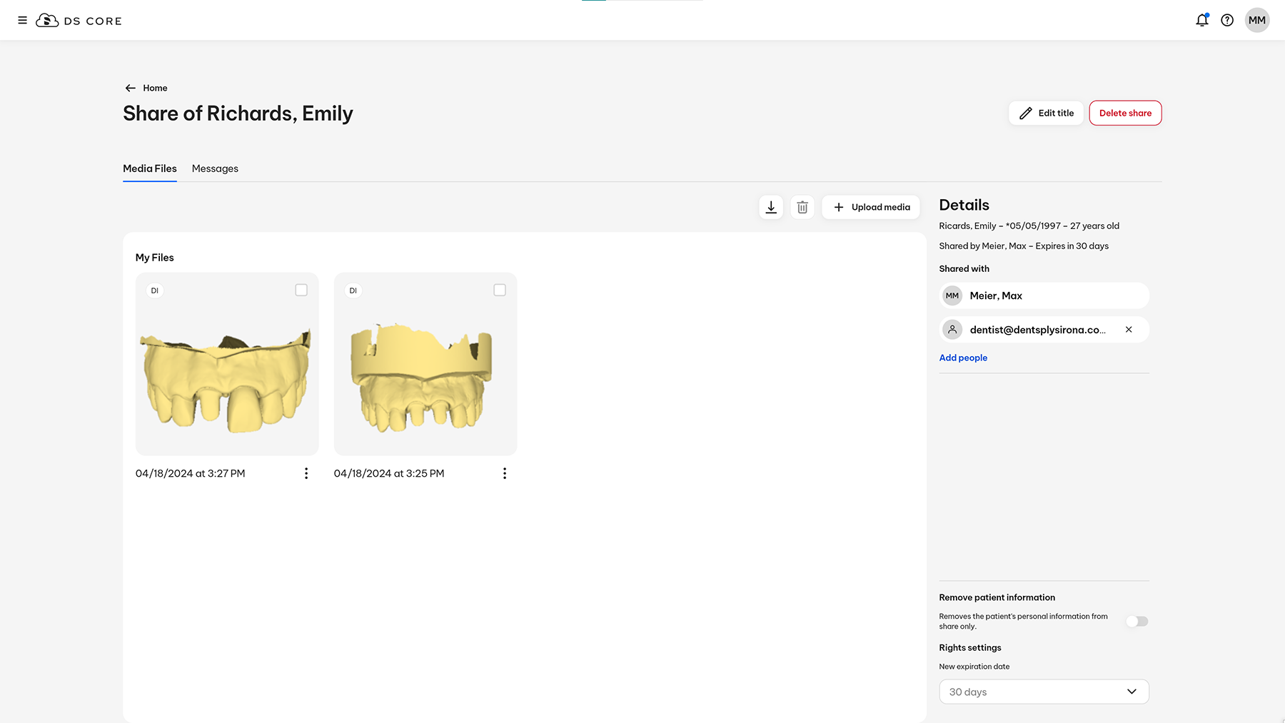 As an open ordering and collaboration solution, DS Core connects dentists and dental technicians in a broad network for efficient collaboration. It is open for numerous data formats (dxd, .stl, .ply and .obj as well as dcm x-ray images), enabling nearly every clinician to send data to the lab, regardless of the digital devices they use. The data input can be easily viewed by the laboratory partner via a web browser—without the need to install special software so dental technicians are free to choose which lab software they use to design or fabricate their applications.