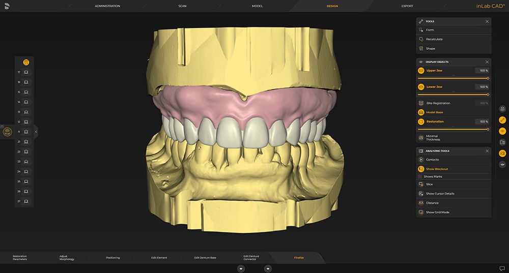 inLab CAD Software 22.0 follows in the footsteps of Dentsply Sirona’s already successfully established solution for digitally manufactured full dentures. The software offers the extension for full-over-natural dentures (single arch denture), optimizes gingiva designs and integrates new Digital Genios and Digital Portrait tooth libraries from Dentsply Sirona used in milling and 3D print production.