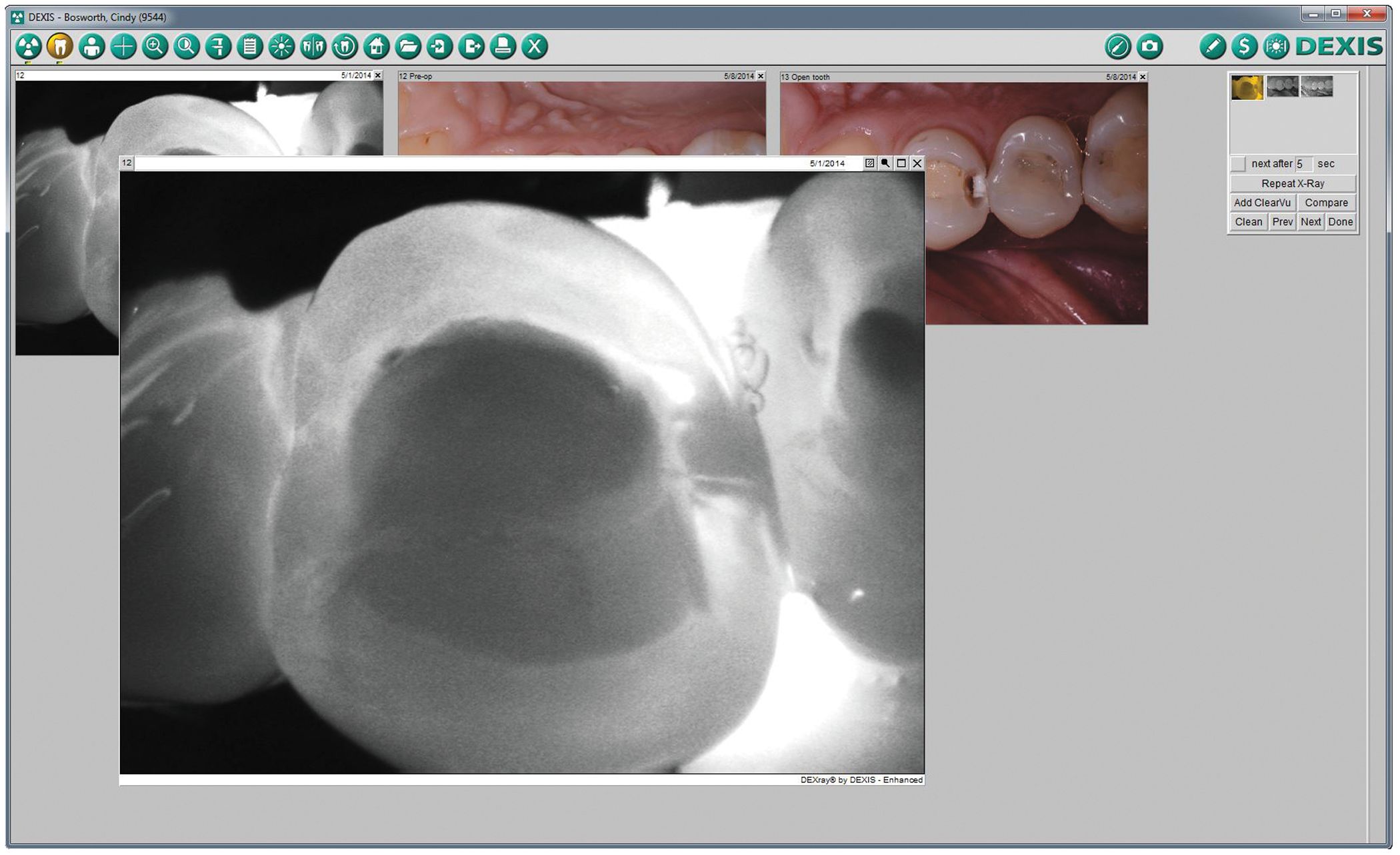 With the tap of a finger on the iPad with DEXIS go, we easily bring up images to discuss with patients [Fig. 4]. Because CariVu images appear similar to X-rays, I explain that we are now both looking through the structure of the enamel, illuminating inside the tooth. Then, I point out that the darker area within the tooth constitutes the decay and make my treatment recommendations. This is the way we examine patients every day since I started using CariVu.