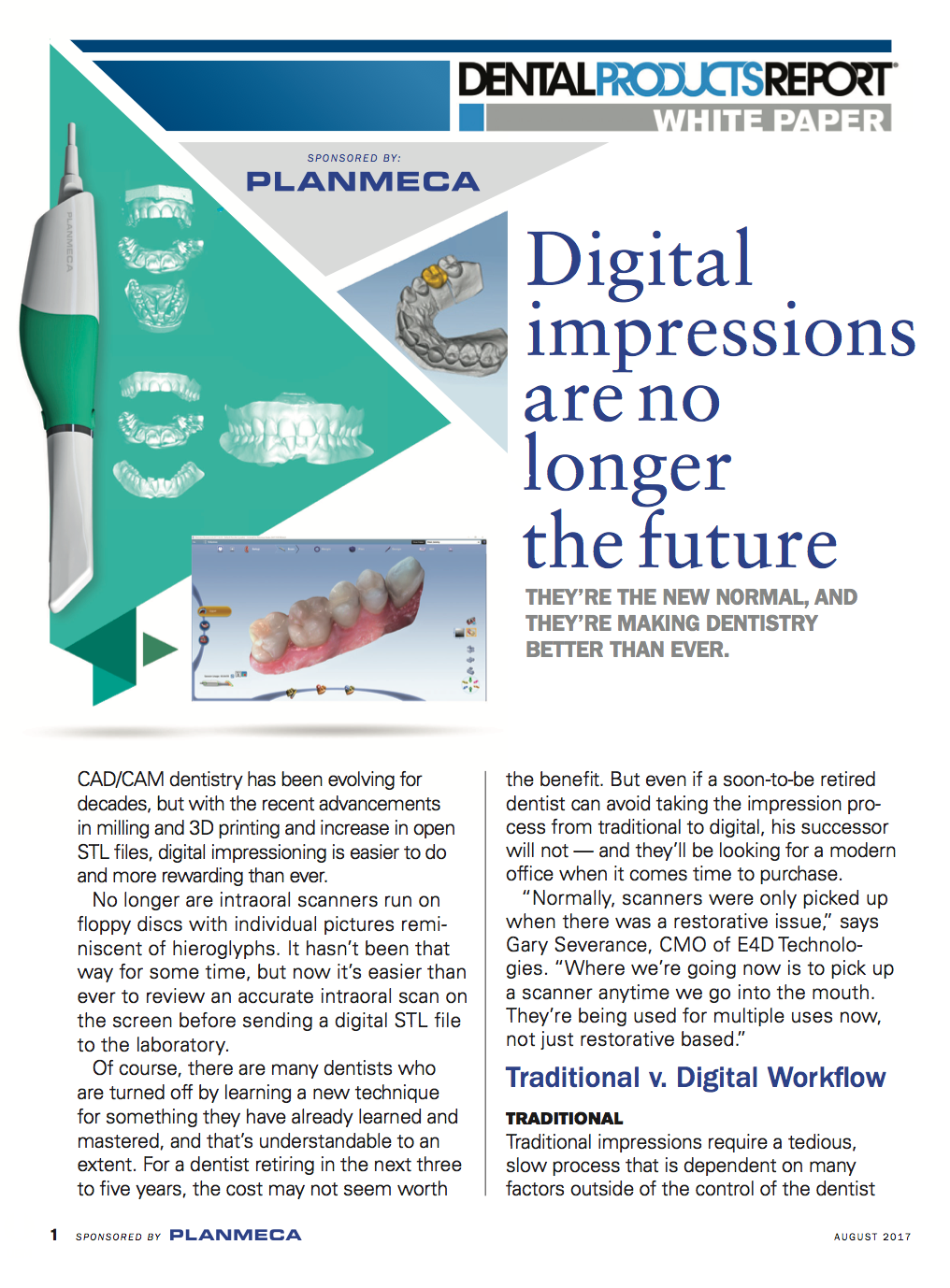 With recent advancements in milling and 3D printing, digital impressioning is easier to do - and more rewarding - than ever. This in-depth whitepaper illustrates why digital impressions are the new normal, and what that means for your practice's potential for dental care and revenue.
