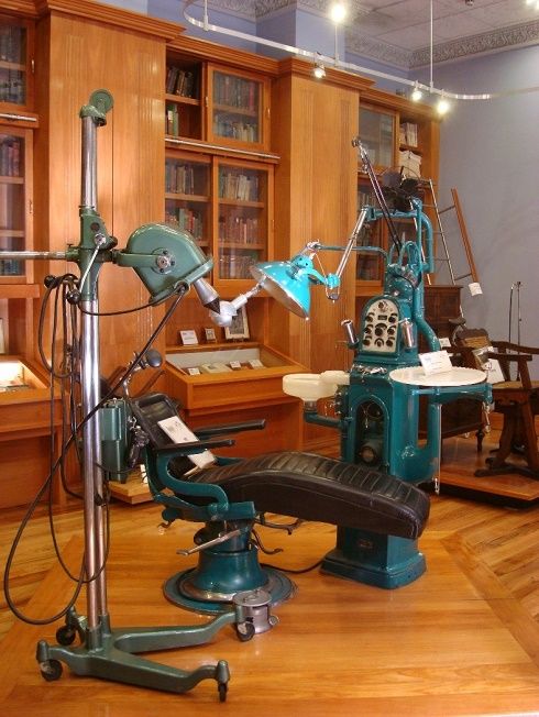 An early dental chair and its equipment in the Mexico City’s Hall of Mexican Dentistry.