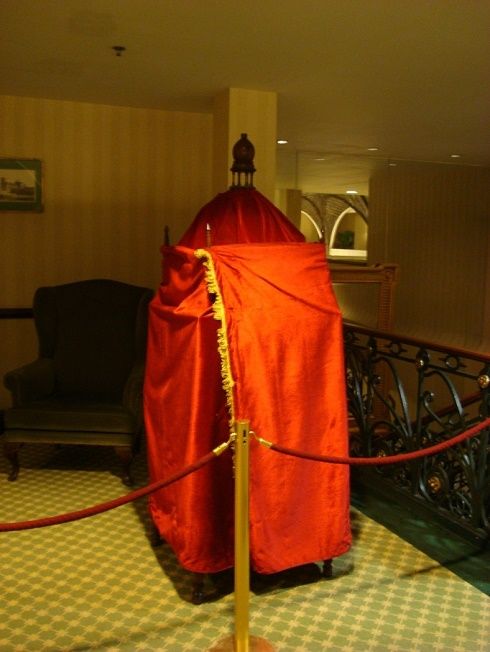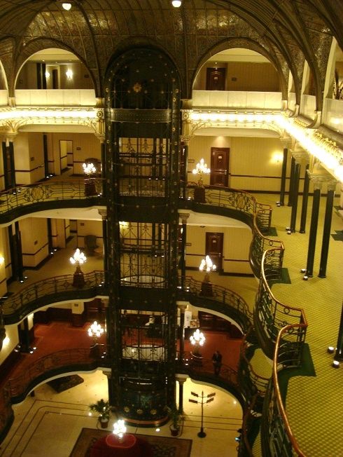 The bird cage in the lobby of the Gran Hotel was covered at night so that the exotic beast could get some rest.