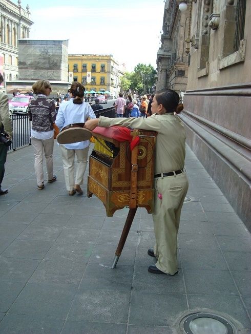 An organ grinder such as the one on the Zócalo that began playing at eight in the morning without fail.