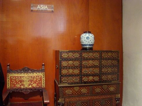A display showing the products of Asia that were exported to Mexico. They inspired the creation of similar pieces in Mexico.