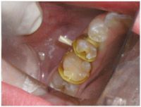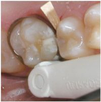 The segmental matrix, when used with a wedge and separation rings, gives tighter proximal contacts in permanent Class II restorations than any other matrix system I have used.Also, I recently discovered another advantage. Many of our teenage and adult patients are undergoing orthodontic treatment and therefore may have bands, brackets, and archwires in place when a Class II restoration may be needed. With a segmental matrix, the operator does not have to remove the wires and or bands and brackets, but can utilize the segmental matrix to provide the required contour and proximal contacts (Fig. 7).