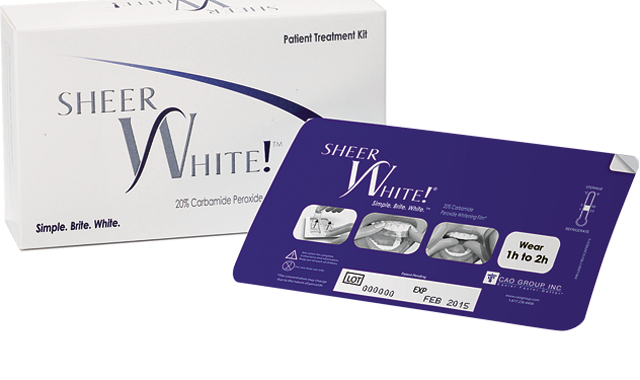 The CAO Group’s Sheer White! System Teeth Whitening , described as the world’s first in-office teeth whitening strips with one-minute chair time, are offered through exclusive distribution partner, Henry Schein, Inc. The strips are uniquely designed with CAO’s Comfort Fit Technology™ and require no soft tissue retraction or isolation. The dental professional simply takes one minute of chair time to apply the strips to the patient and then sends them on their way to wear for 30 minutes. Additionally, Sheer White! Take-Home personal treatment kits are available.