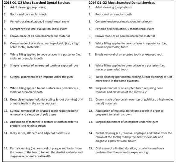 In their most recent endeavor, FAIR Health has attempted to bring integrity to the data regarding the dental services that consumers are most in need of cost information. In their most recent release, FAIR Health shared the top fifteen most searched dental services by healthcare consumers that are most frequently looking for cost information. The results of this data also depicts the changes in the most searched dental services from 2013 and 2014.