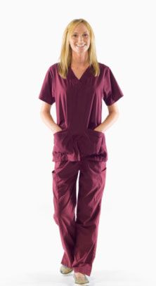 To keep step with the times, she incorporates more contemporary looks into her scrubs including tapered, shorter tops, slightly flared legs, and low rise waists on pants, along with numerous color choices in solids and prints.