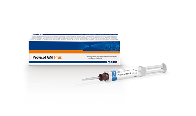 Provicol QM Plus features strong retention and secure adhesion to ensure that temporary restorations remain in place for as long as necessary. The non-eugenol temporary cement is formulated with calcium hydroxide and can reduce post-operative sensitivities while helping prevent caries with its antimicrobial properties. Its low film thickness increases ease-of-use and accuracy of fit when placing temporary crowns, bridges, inlays, and onlays. Further enhancing speed and convenience, Provicol QM Plus is applied from an easy QuickMix syringe and excess material can simply be peeled off.