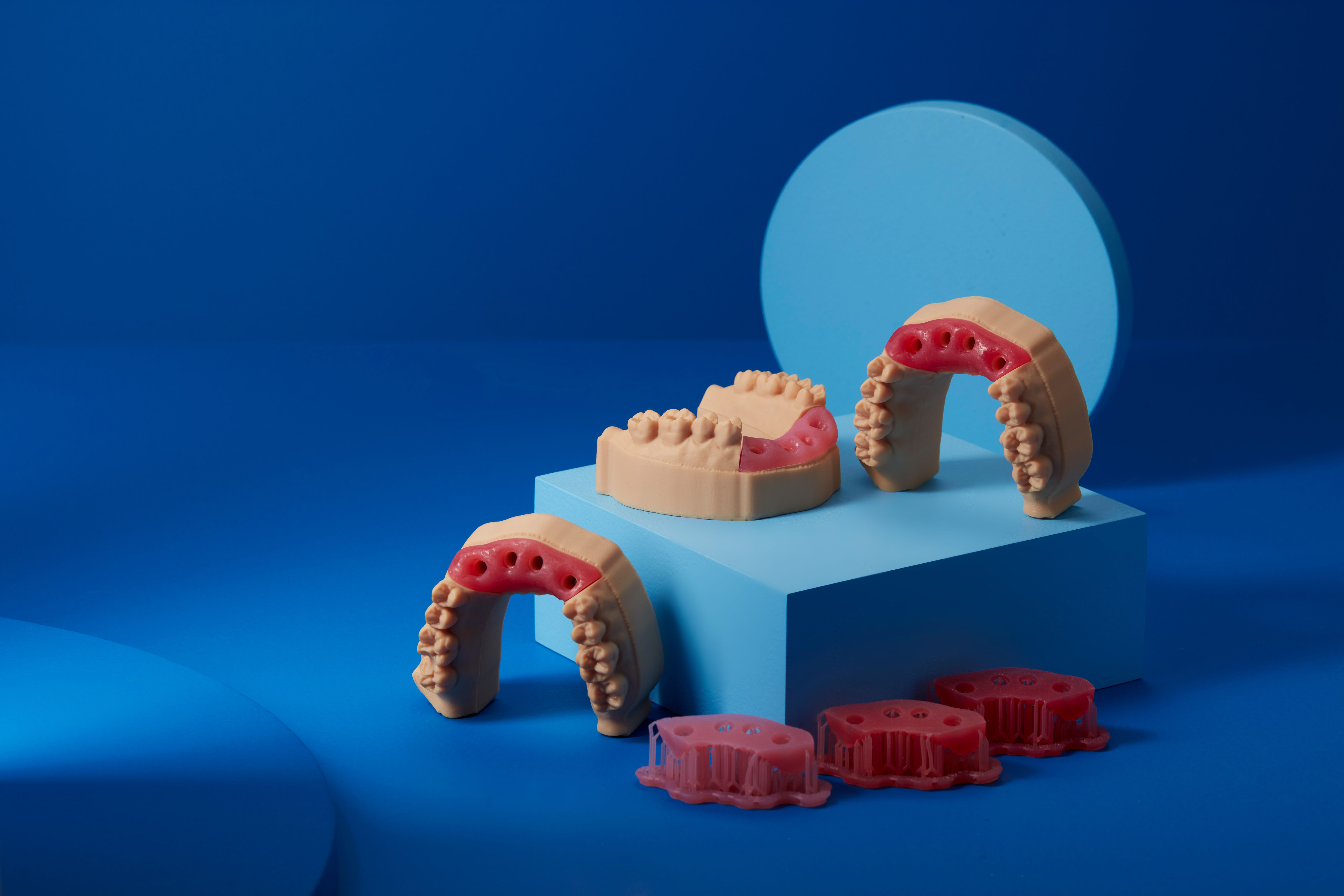 The new Soft Tissue Starter Pack is made up of Formlabs Flexible 80A Resin and three color pigments which allow for the printing of customized gingiva masks for implant models.