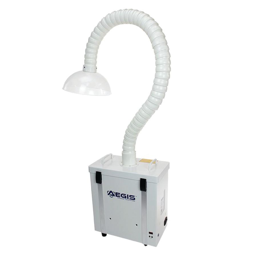 For the past few months, I’ve been working with a device from Aegis called the VacStation. This portable, standalone unit contains a very strong brushless vacuum motor. The device has a strong, large-diameter corrugated plastic hose that can be positioned wherever necessary to provide the best angle for removal of air as it exits the oral cavity. It is flexible and can be positioned anywhere the operator wants. Once positioned, the hose remains in place.