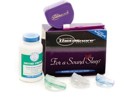 The Adjustable TheraSnore oral appliance, like other appliances, is designed to hold the mandible in a slightly protrusive position to help keep the airway open. This appliance is highly effective in treating mild to moderate OSA and simple snoring; it is also highly cost-effective.