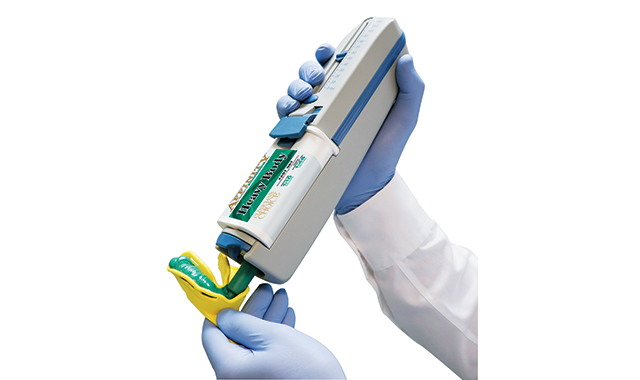 But timing and handling issues are persistent challenges in creating perfect, bubble-free impressions with no voids or distortion. To date, extrusion of putty-like heavy body VPS materials has been tough to control from tabletop mixers, which are typically shaped like an injector gun or machine. As heavy body must be mixed just prior to use, timing and placement of machines have presented further challenges, limiting impression treatments to specific rooms where the mixer is located or investing in multiple machines in order to have one for every treatment room.