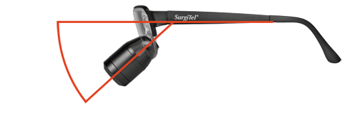 Improperly designed or fitted loupes with shallow declination angles (DA) can force users to excessively tilt their head, creating serious ergonomic problems such as eye strain, headaches, neck pain/injury and upper back pain/injury.