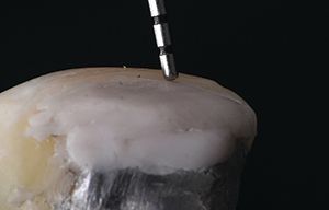 Fig. 3 - Showing the depths of the prepared cavity (entire depth is roughly 3 mm).