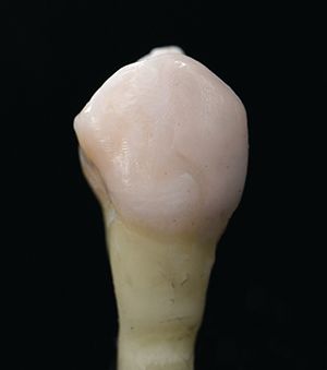 Fig. 9 - Final result of the thick pink opaquer layer (facial view).