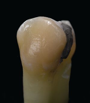 Fig. 1 - Premolar tooth restored with a proximal amalgam restoration.