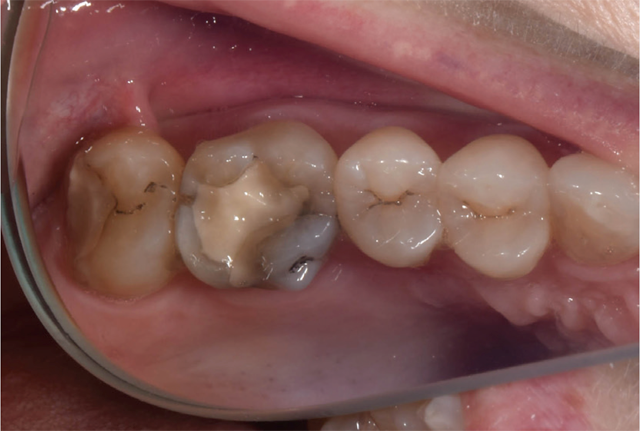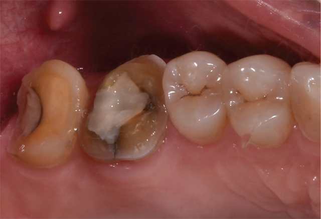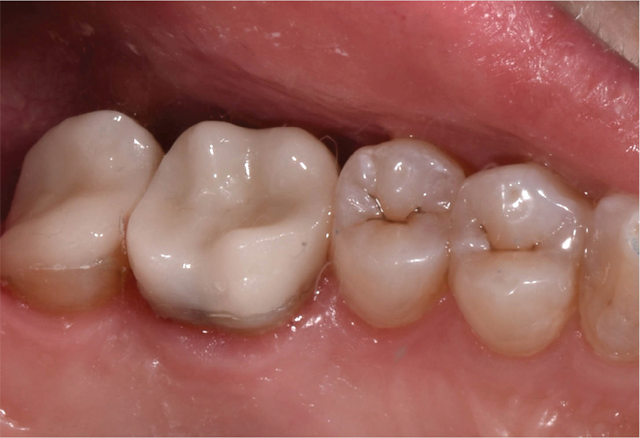 A 50-year-old female with no significant medical history presents for same-day, all-ceramic, full coverage onlay restorations on tooth No. 14 and No. 15. Existing restorations include No. 14OL and No. 15DO defective composites with open margins and recurrent caries (Fig. 1). The patient reports infrequent cold sensitivity localized to No. 14 and No. 15.