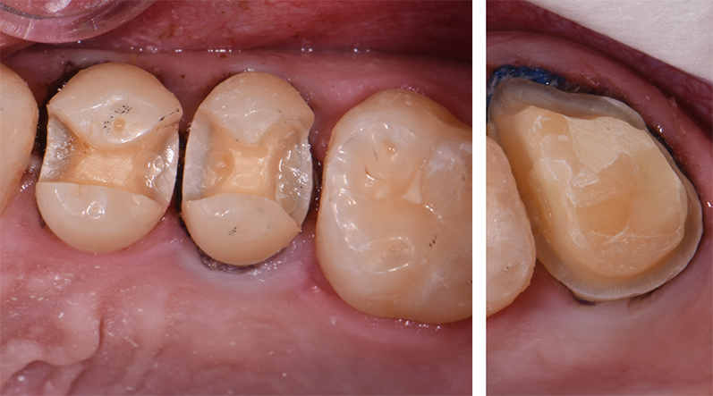 Inlays and crown were prepped, and the rubber dam was removed for photos (Figs. 8-9).