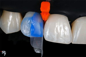 We’ve always used traditional techniques for doing day-to-day Class III restorations. Flat mylar tape is the standard way to contain the composite, but this can pose problems depending on the size of the restoration and shape. We would often end up with very flat contact points and contours not replicating the tooth’s natural contours. Metal contoured matrices posed problems in getting an adequate cure as well as too much shape, as most matrices were designed for posterior teeth.