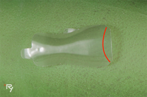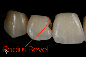 Fig. 7: This image shows the finished, cleaned prep with the radius bevel leading out to an infinity margin.