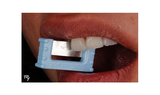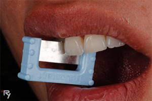 Fig. 2: A ContacEZ saw is taken to clear the contact of any tartar buildup. This is quite common, and if all the contacts are cleared, it makes the placement of the rubber dam much easier.